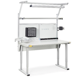 La table ergonomique de travail Concept s’adapte aisément pour répondre aux besoins des environnements de travail industriels. Plusieurs tailles et combinaisons sont disponibles dans cette famille de produits. La hauteur peut être réglée électriquement (réglage de la hauteur par moteur électrique) ou manuellement (à l’aide d’une manivelle ou d’une clé Allen). Le modèle de table de travail Concept possède la plus large gamme d’accessoires du marché. Convient particulièrement aux environnements de conditionnement et aux fonctions de montage, de contrôle et d’assurance qualité dans l’industrie.