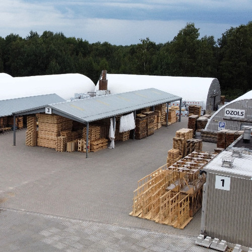L'usine de production en Lettonie. Nous employons 40 travailleurs. Nous disposons d’outils modernes pour fabriquer différents produits d’emballage industriel. Notre bureau de construction nous aide à concevoir les meilleurs emballages en bois pour nos clients. Nous avons également des entrepôts couverts pour stocker les produits finis, ainsi que des chambres de séchage pour les procédures de séchage et de traitement thermique